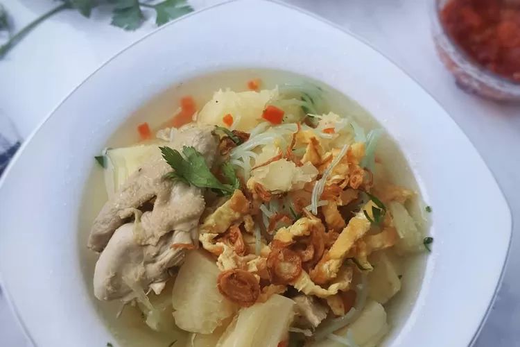 Tambahkan air kembali biarkan hingga mendidih, masukan kembali ketela yang masak setengah matang, potongan-potongan ceker ayam dan racikan bumbu yang telah diulek tadi dan bawang bombay dsan beri penyedap rasa dan garam. Masak beberapa menit hingga katela terasa sudah empuk.